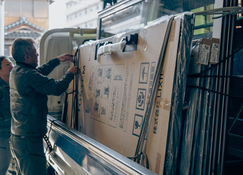 住宅用サッシの組立や現場での取り付け、商品の配送を行います。